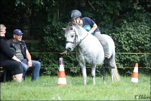 Bei strahlendem Sonnenschein konnten die Kinder mit ihren Ponys ihre Geschicklichkeit unter Beweis stellen. Es waren einige Aufgaben zu erfüllen vom Slalomreiten über Dosenwerfen, Eierreiten bis hin zum